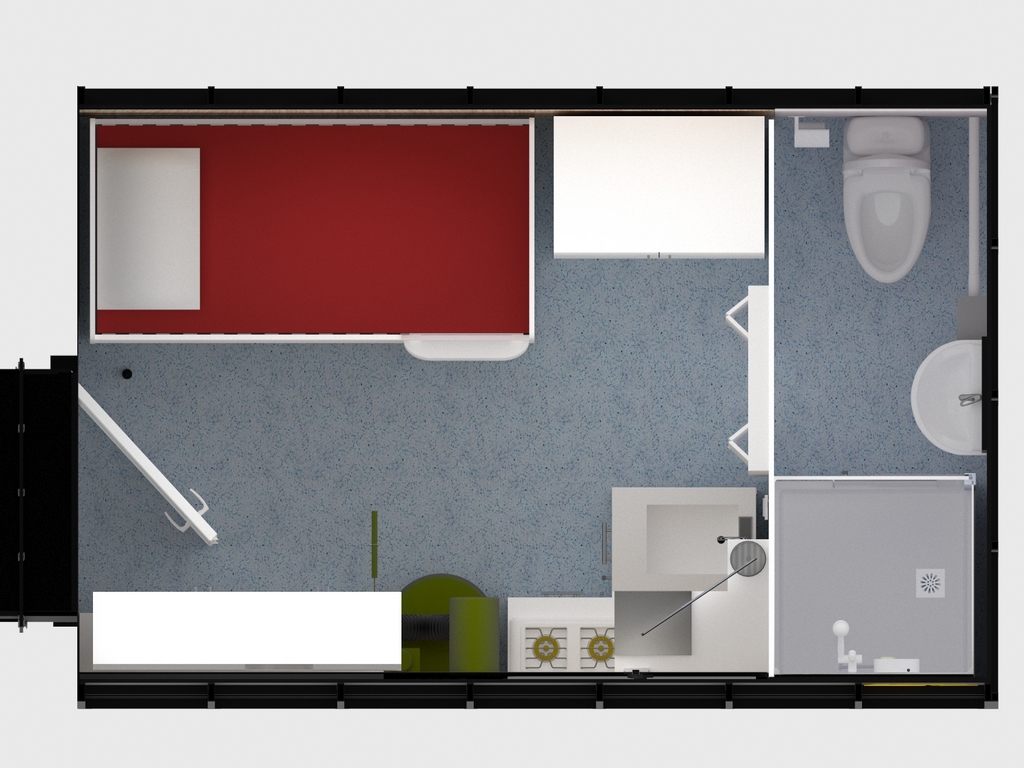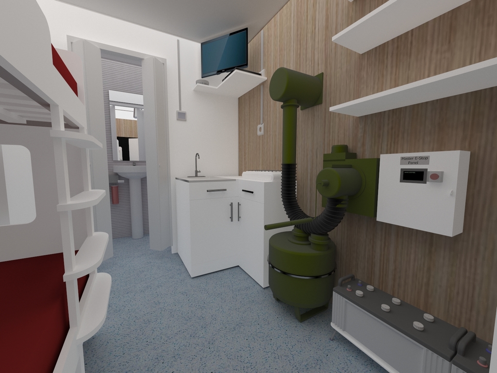 Designed as an economic model to meet the need, this shelter will make you feel safe from the moment you enter it. When you walk in through a fully sealed, violent explosion proof and cloaked security door, you will see shelves and cabinets on your right side where you can store food. Next to it, you will find CBR filtration system, beds and wardrobe, wet volume space with special system toilets and baths, wet volume space and a kitchen prepared with sink and oven between the shelves