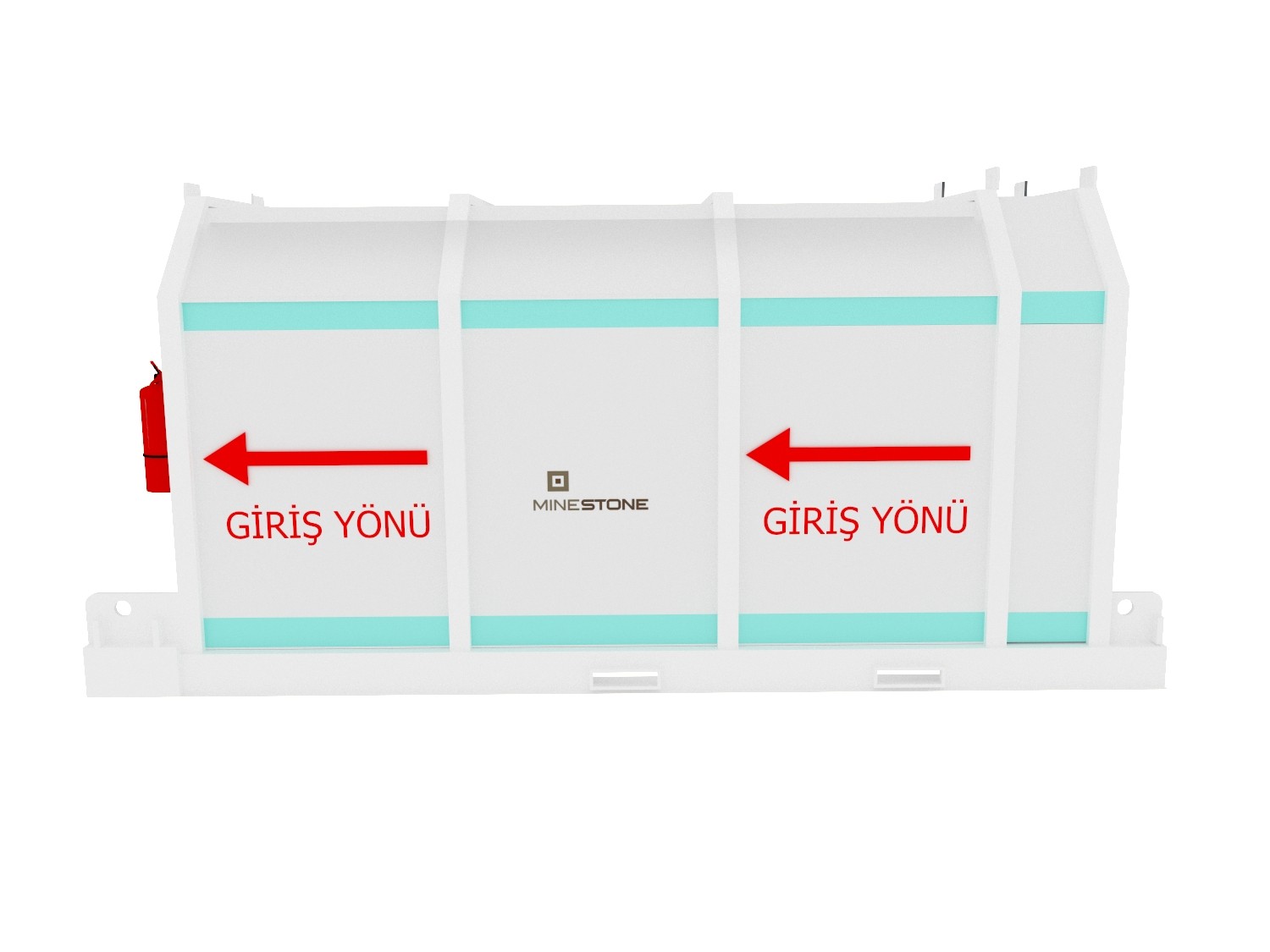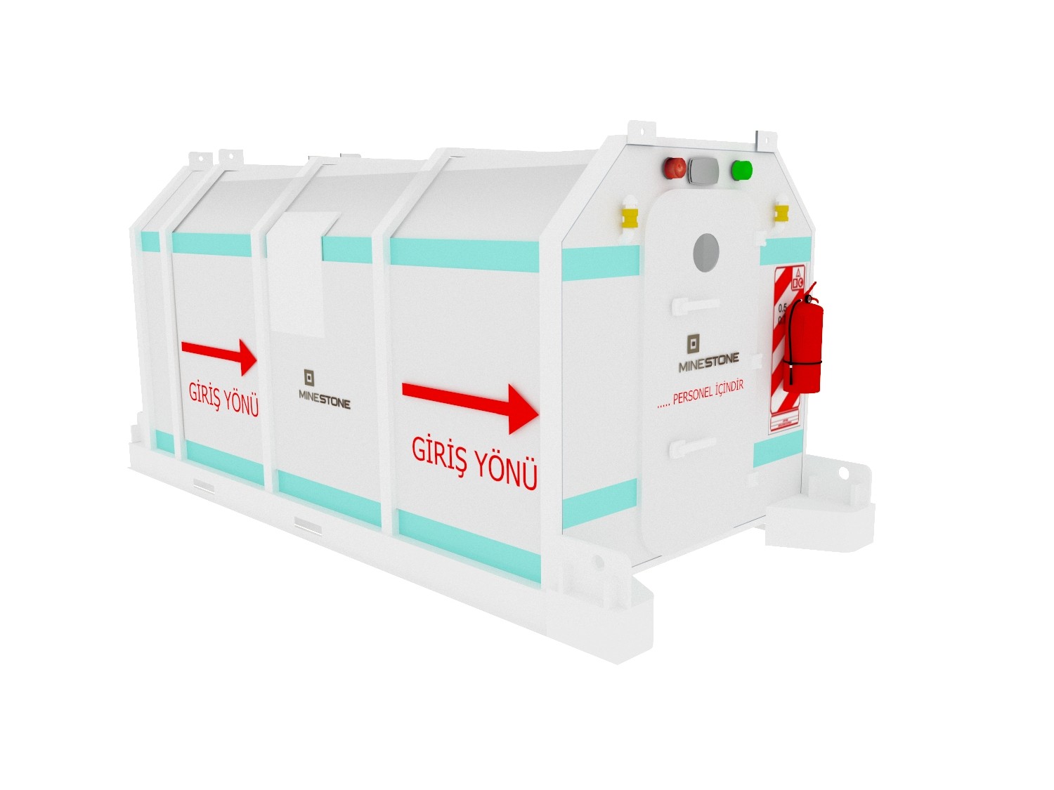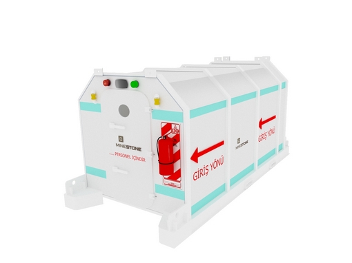 It has 5psi explosion resistance, air conditioning, Air cleaning, moisture removal, lighting, warning lights, communication, systems such as gas monitoring systems and so on. in these rooms with systems, the minimum and maximum gas values in the room are at least 19% for O2, 35 ppm for co and 0.5% for CO2. It is ensured that the temperature in the asylum room does not exceed 35 OC.