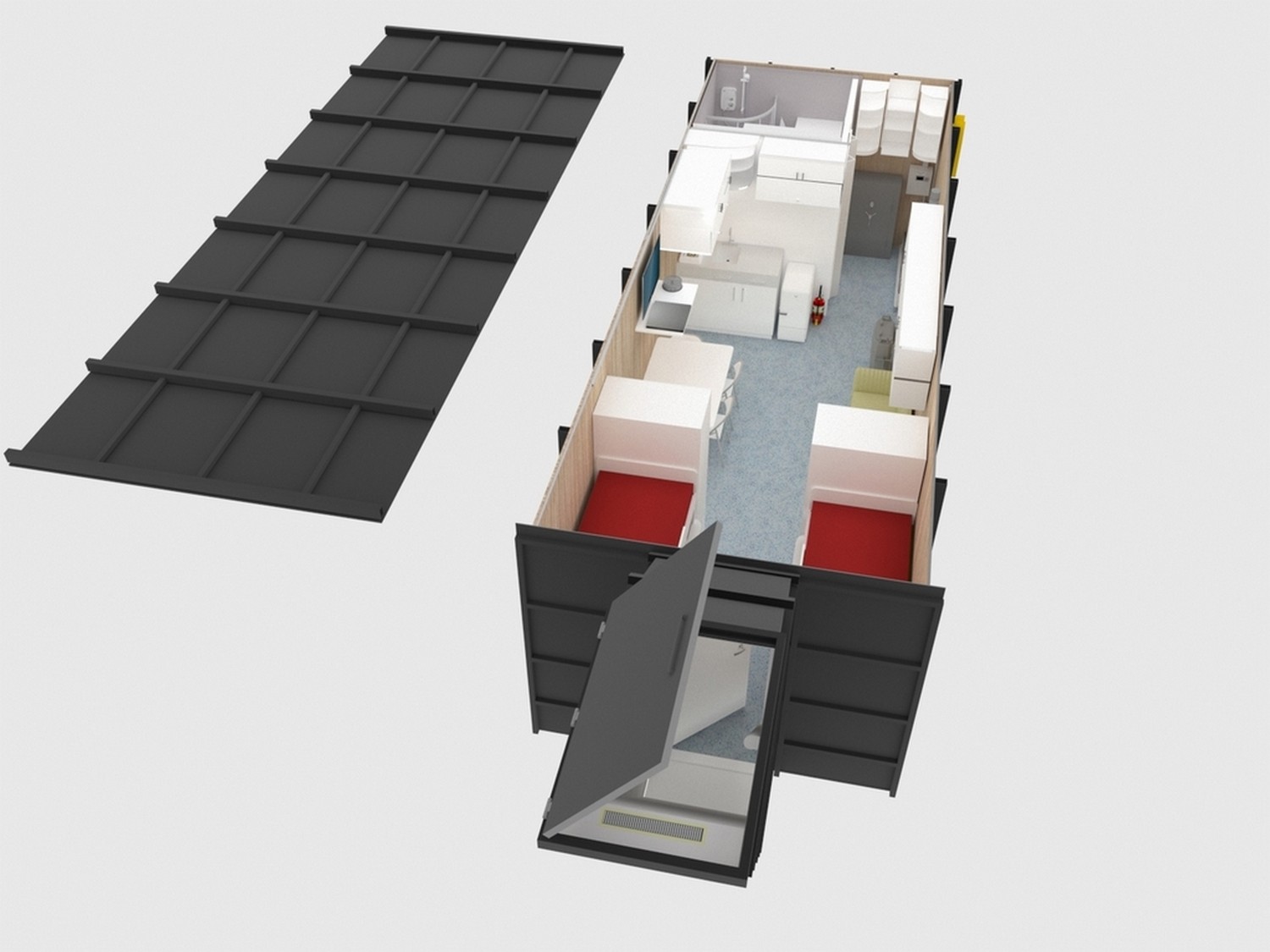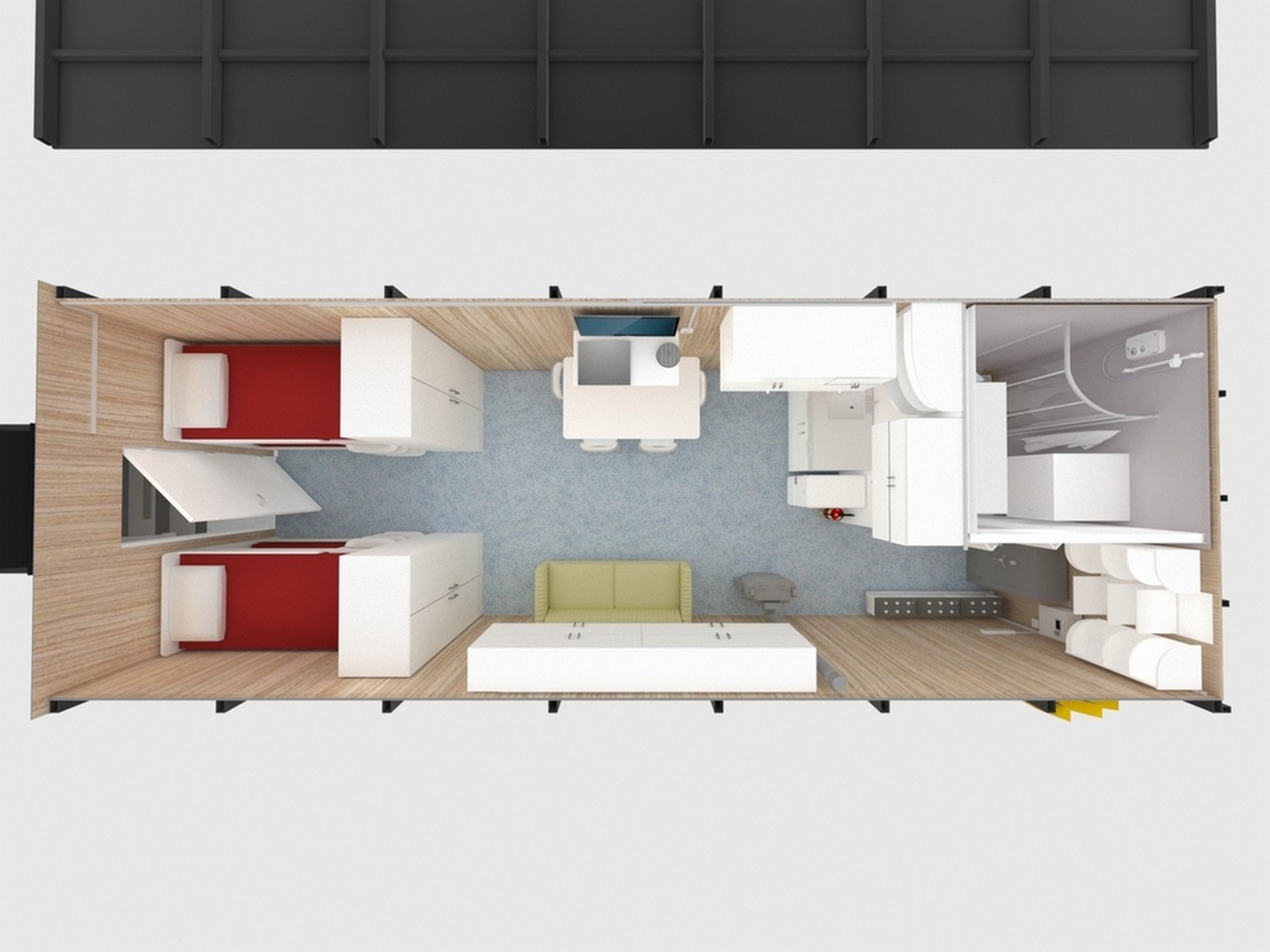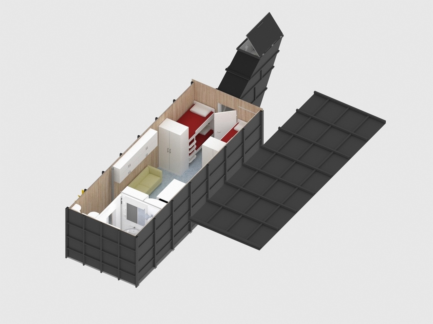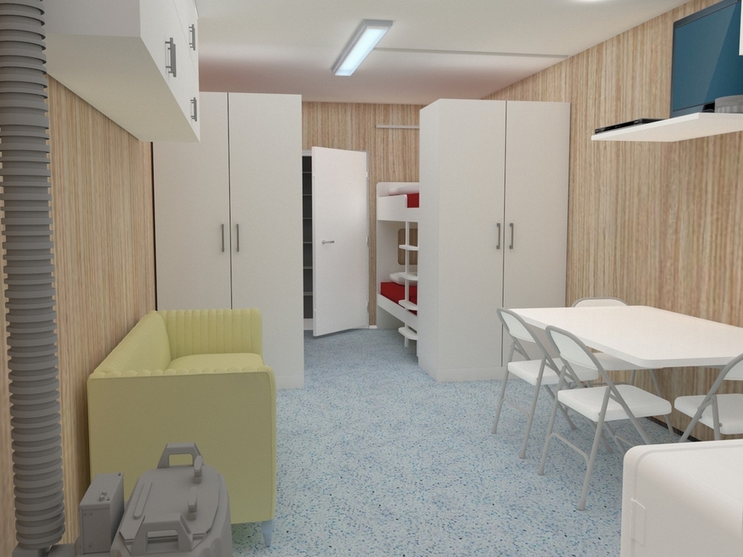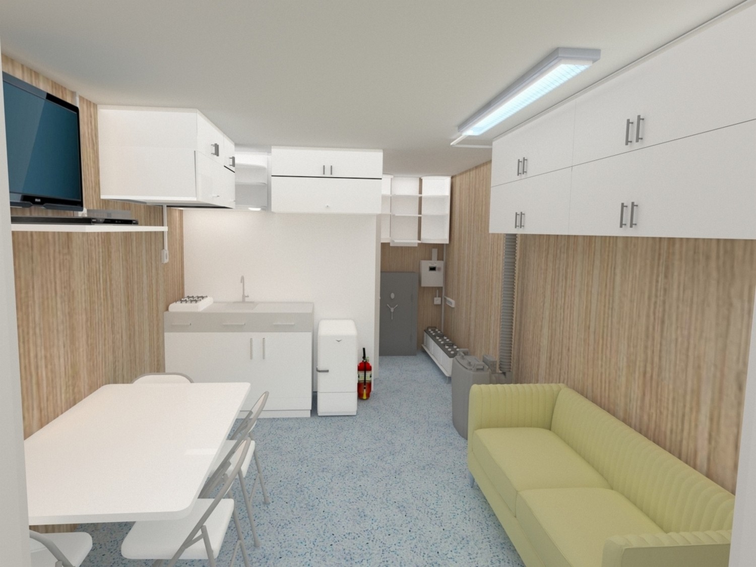 Hemen yanında KBRN filtrasyon sistemi, yataklar ve elbise dolabı, tam karşınızda özel sistem tuvalet ve banyoların olduğu ıslak hacim mekanı, ıslak hacim mekanı ile rafların arasında lavabosu ve ocağıyla birlikte hazır edilmiş bir mutfak bulacaksınız.