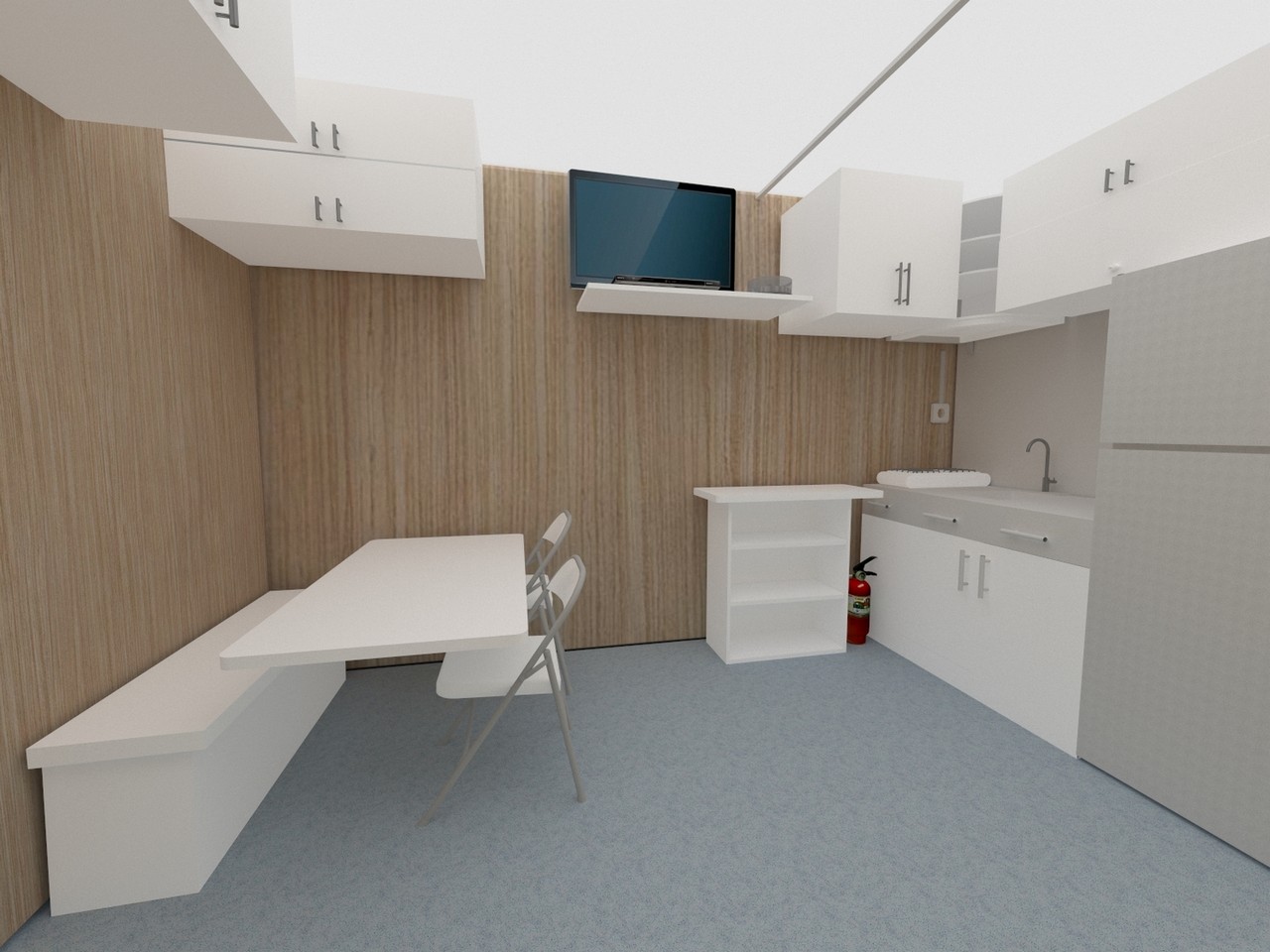 Dört kişilik bir aile için oluşturulan bu sığınak tipinde ideal yaşam alanı bölümleri konumlandırılmıştır. Patlamaya dayanıklı giriş kapısından içeri girdiğinizde ortak kullanım alanı olan oturma odasına girmiş olacaksınız.