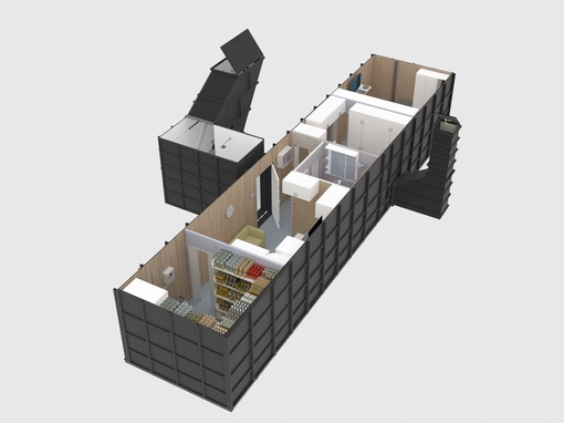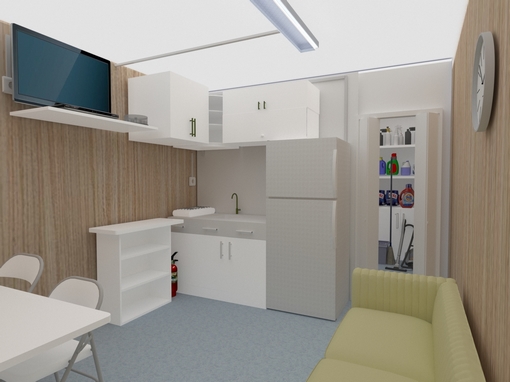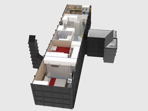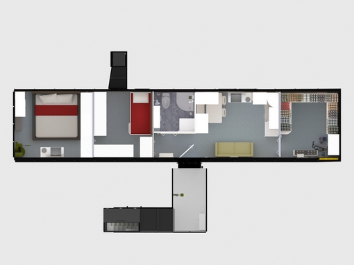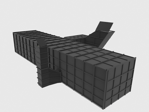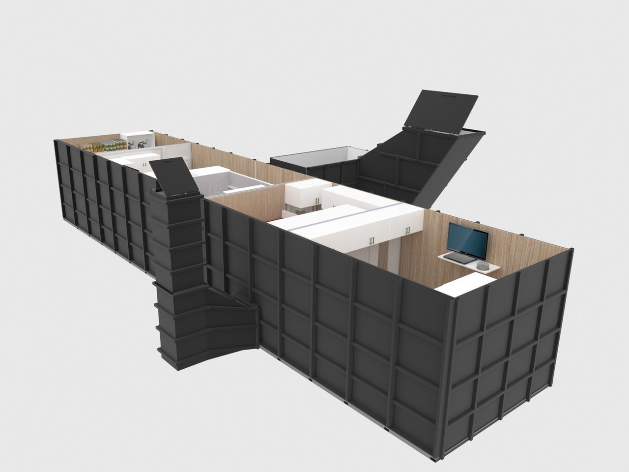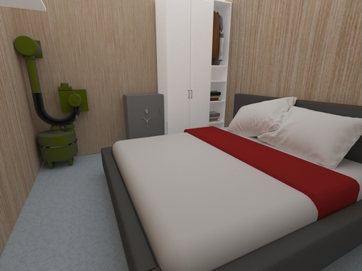 Dört kişilik bir aile için oluşturulan bu sığınak tipinde ideal yaşam alanı bölümleri konumlandırılmıştır. Patlamaya dayanıklı giriş kapısından içeri girdiğinizde ortak kullanım alanı olan oturma odasına girmiş olacaksınız.